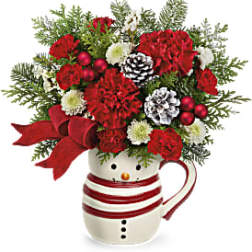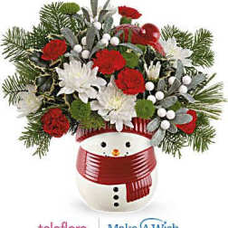 Price: $69.99Send a Hug Snowman Frosty Stripes Bouquet by Teleflora